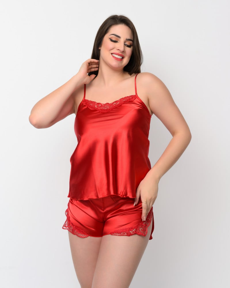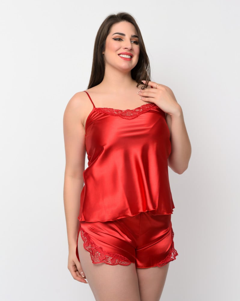 ابتكري إطلالة ساحرة ومثيرة مع طقم شورت وبلوزة كامي ساتان احمر ، يتألف هذا الطقم الرائع من شورت قصير وبلوزة كامي بلون أحمر جريء وجذاب ، مصنوعة من قماش الساتان عالي الجودة ، توفر لك هذه القطعة الراحة والأناقة في آن واحد ، استمتعي بالحصول الان من داخل متجرنا علي قميص نوم احمر قصير بسعر خاص ومميز